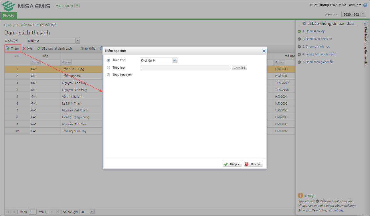 - Thêm thí sinh theo Khối/Lớp/Học sinh
