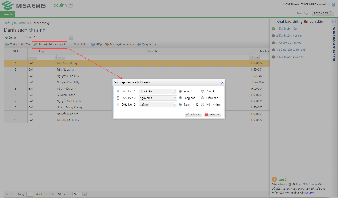 - Các thí sinh sau khi được chọn, chương trình sẽ sắp xếp theo thứ tự alphabet của Họ và tên, cùng họ tên sắp xếp theo Ngày sinh từ nhỏ đến lớn, cùng ngày sinh sắp xếp theo Giới tính từ Nam đến Nữ.