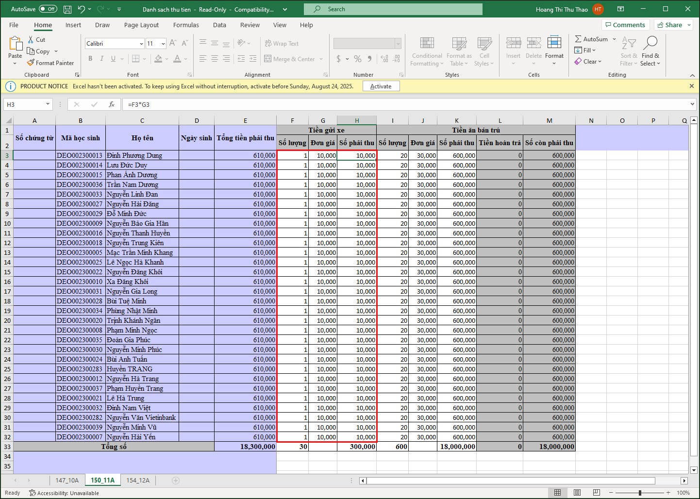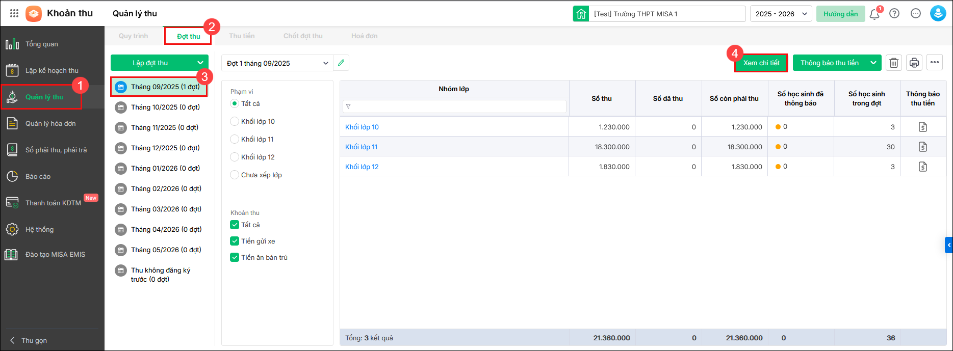 Để thay đổi Số phải thu cho học sinh, bạn thực hiện theo các cách sau đây: