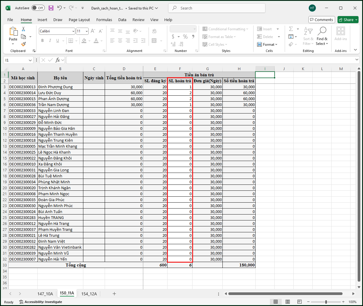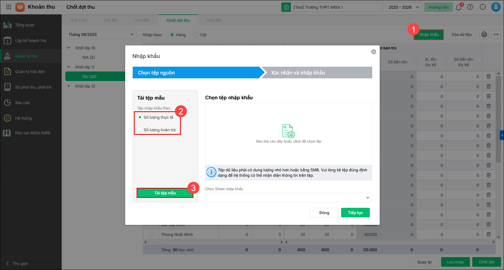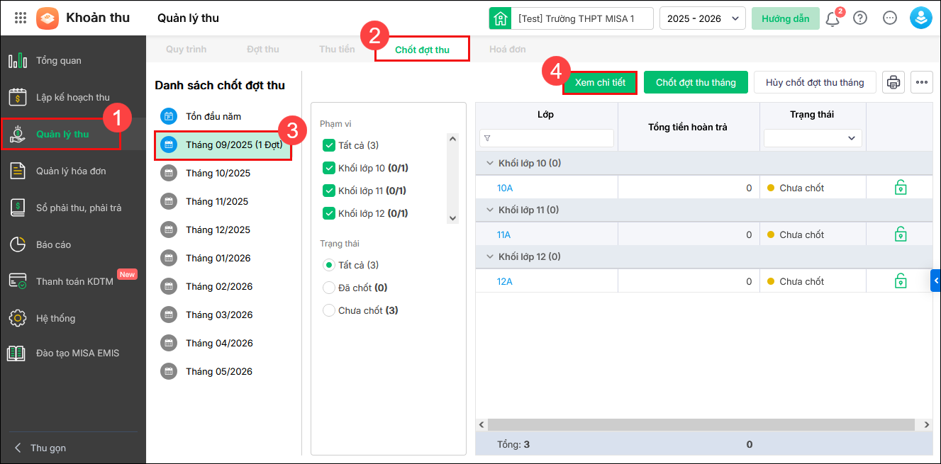 Để chốt số buổi ăn/hoàn trả cho học sinh, bạn thực hiện theo các cách sau đây: