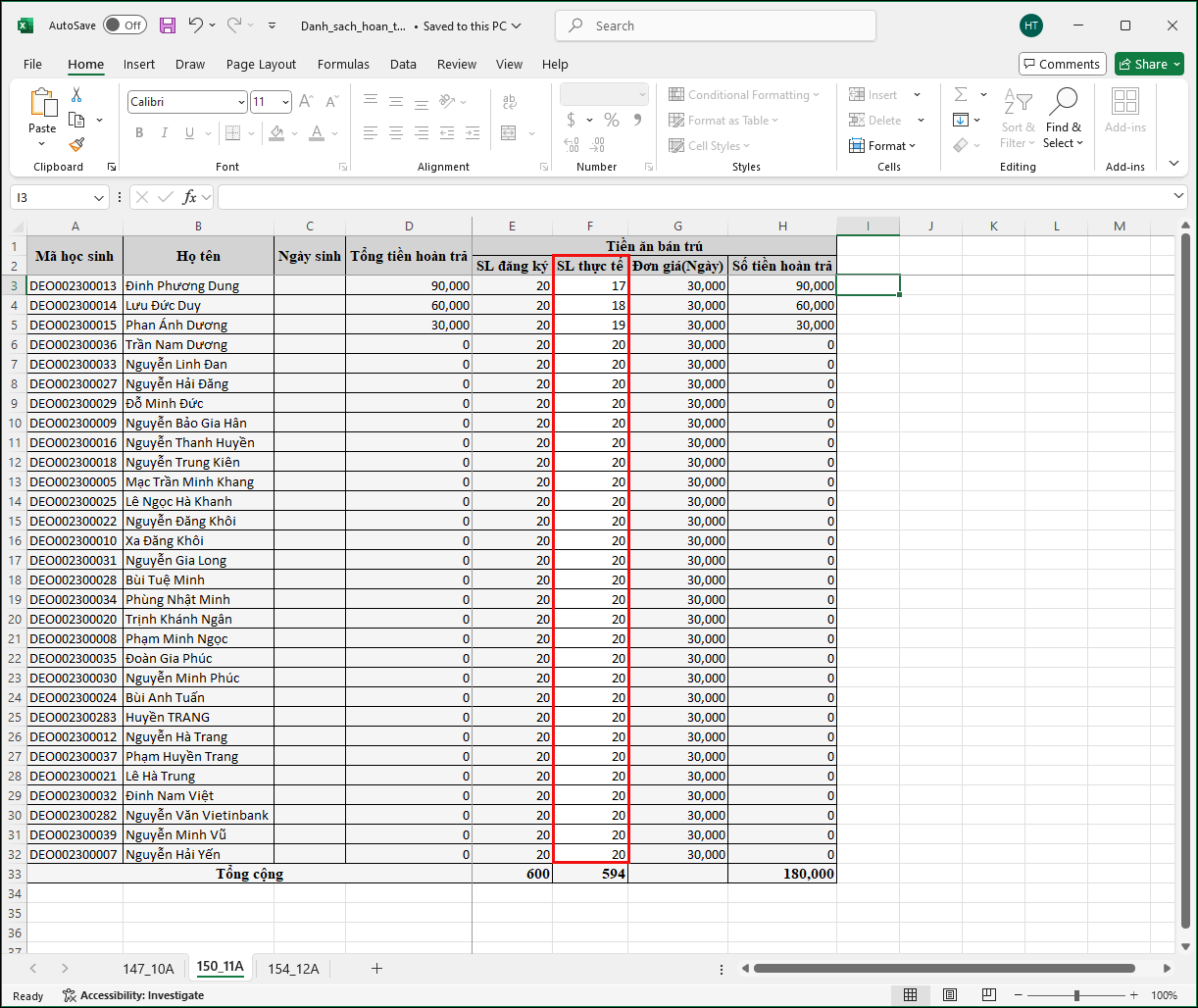 - Trả lại cho phụ huynh: bằng cách ghi nhận danh sách chi trả theo hướng dẫn tại đây.