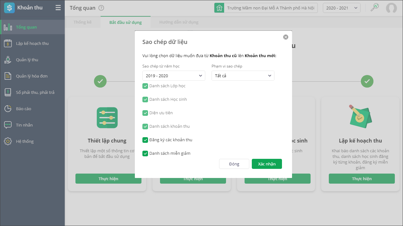 Xem hướng dẫn các bước sao chép dữ liệu từ phân hệ Khoản thu V1 lên Khoản thu V2 tại đây