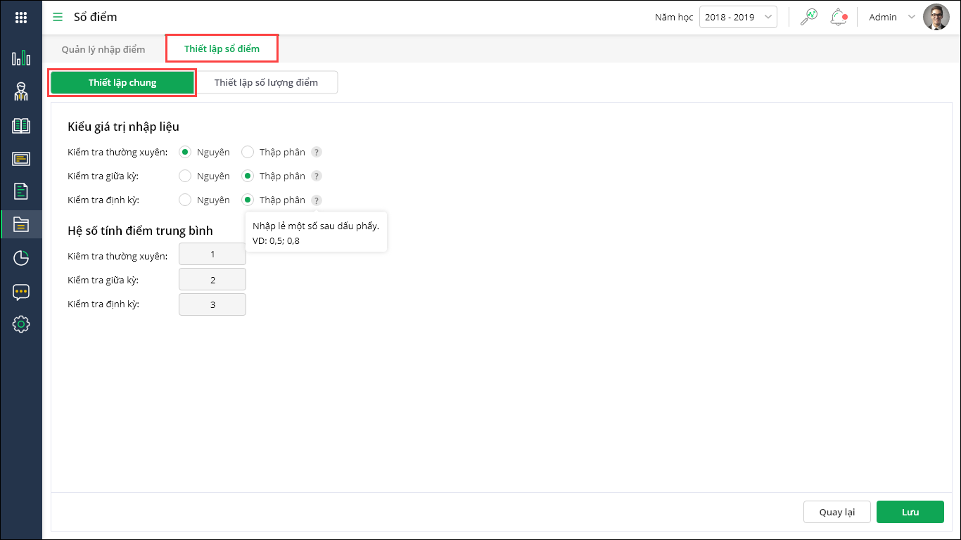 Thiết lập số điểm về loại điểm đánh giá và định dạng con điểm