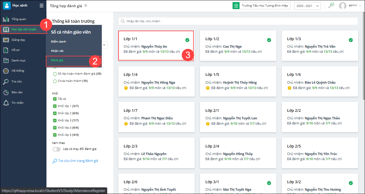 - Trong bảng đánh giá định kỳ của khối lớp 1: