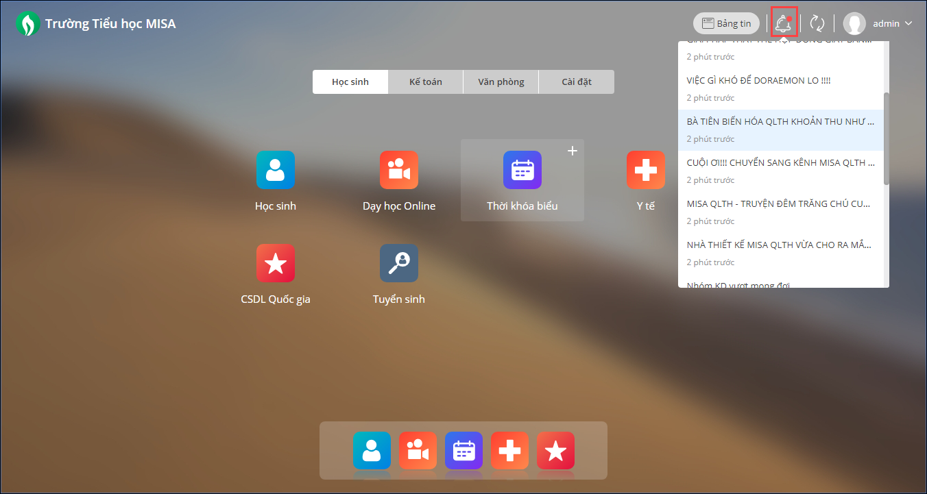 - Ngay khi đăng nhập vào phần mềm, nhấn biểu tượng thông báo
