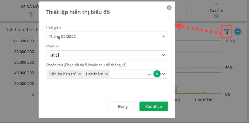 - Nhấn vào đây để thiết lập lại biểu đồ theo dõi tình hình thu của các khoản thu khác
