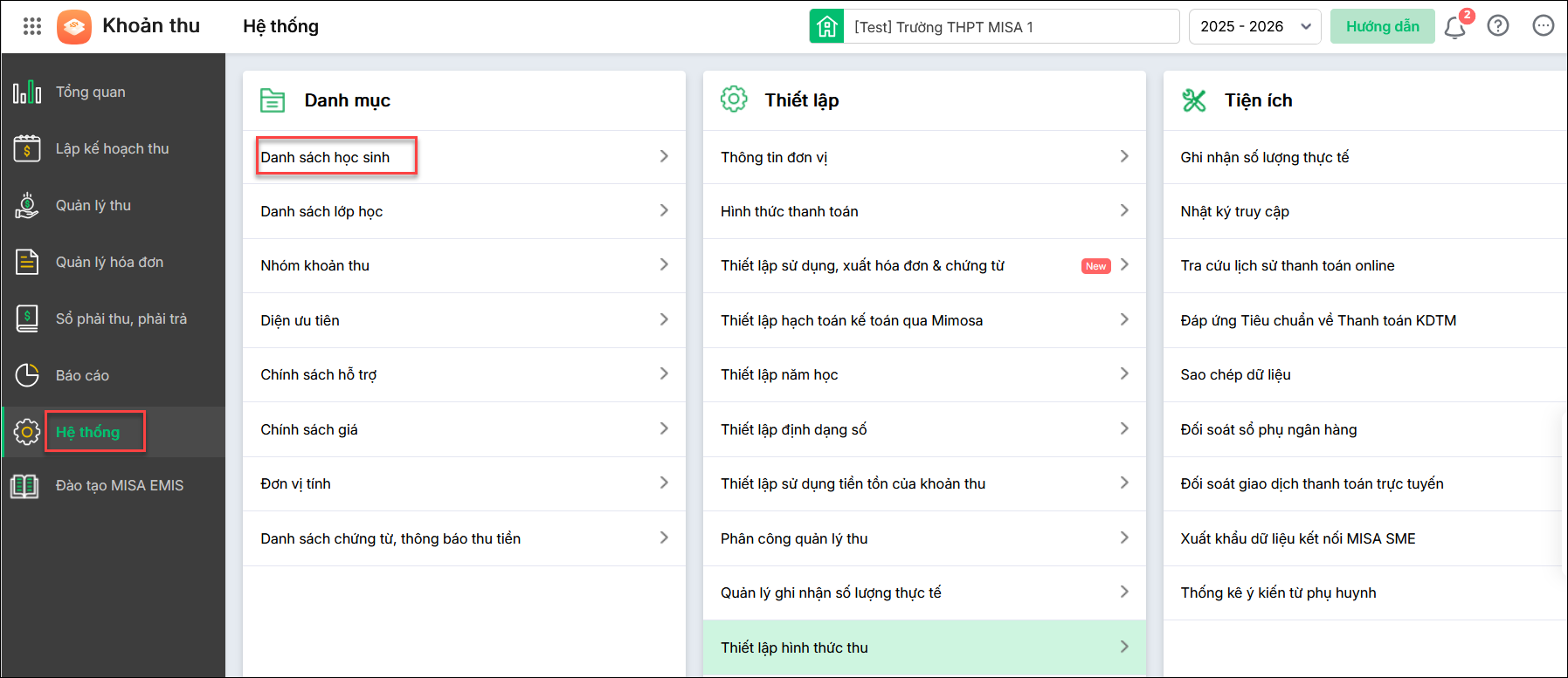 Đối với các đơn vị chỉ sử dụng phân hệ Khoản thu, muốn sắp xếp danh sách học sinh theo đúng danh sách alphabet hoặc sắp xếp a-z, ….