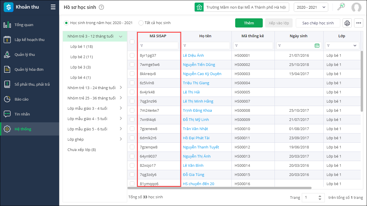 - Trước phiên bản R101.01: Để dễ dàng phân biệt các học sinh với nhau trên phần mềm MISA QLTH, mỗi học sinh được cấp một mã SISAP khác nhau. Tuy nhiên mã này đang có chữ hoa, người dùng mất thêm thao tác để nhập.