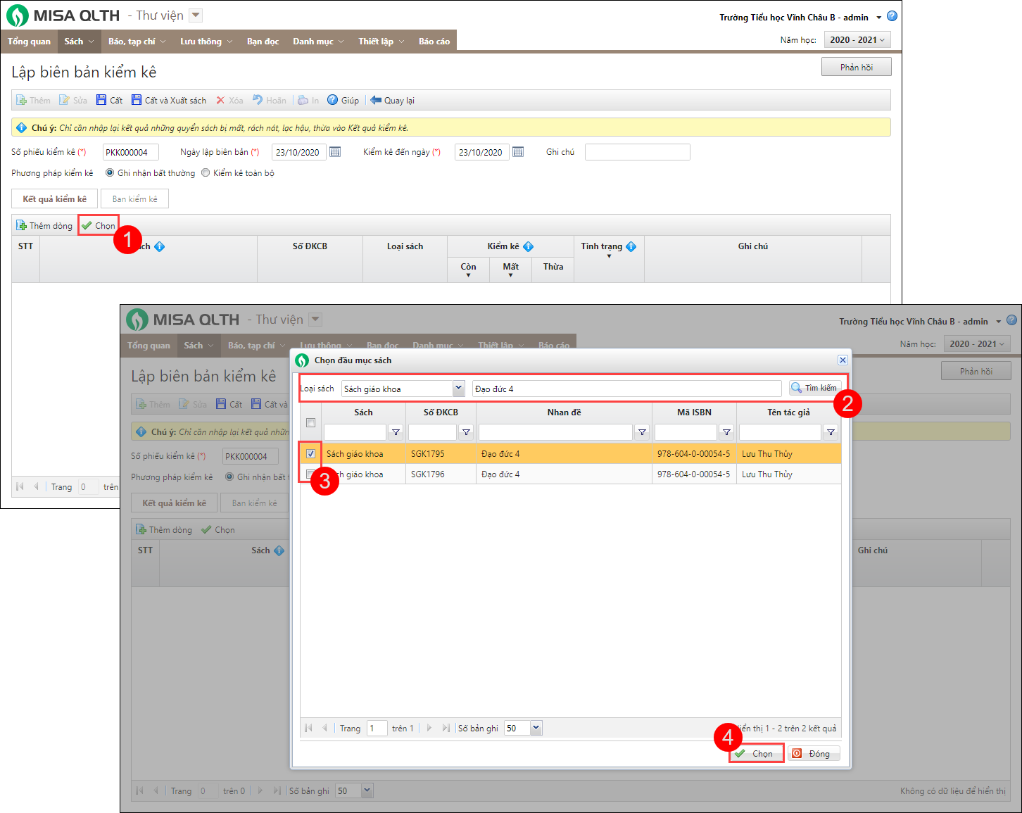 Xem hướng dẫn kiểm kê sách trên phần mềm MISA QLTH tại đây