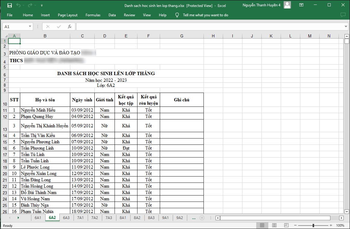 Mục đích: Cho phép giáo vụ in danh sách học sinh lên lớp thẳng của toàn trường.