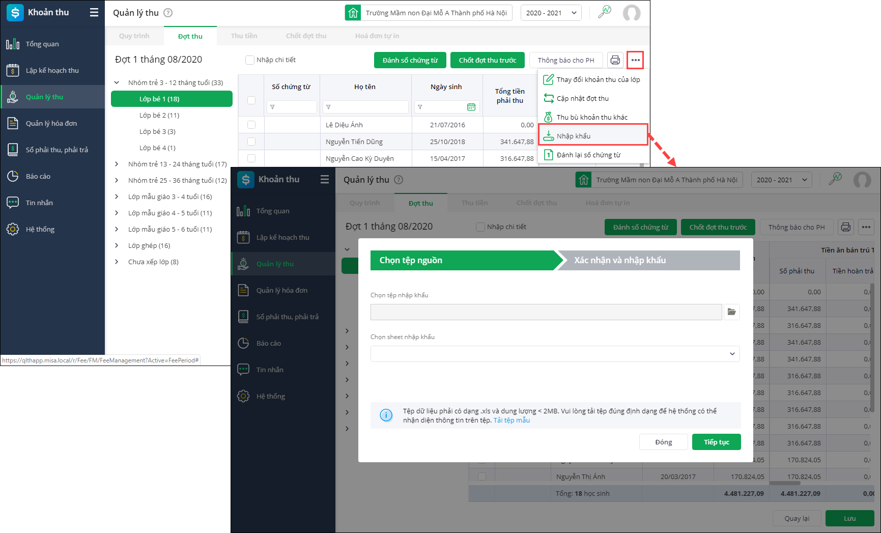 Xem hướng dẫn nhập khẩu danh sách thu tiền vào phần mềm tại đây.