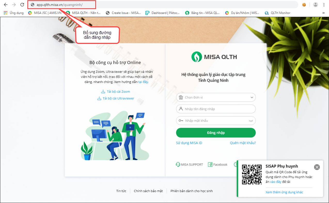 Bổ sung đường dẫn đăng nhập vào phần mềm: app.qlth.vn\<tên tỉnh/thành phố>