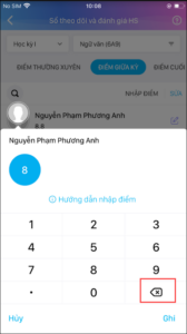 - Để xóa điểm đã nhập, chọn đầu điểm cần xóa và nhấn vào biểu tượng xóa bên dưới