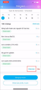 - Chọn 1 ngày trong tuần học để sao chép phiếu mượn thiết bị đến ngày đó.