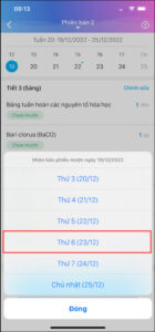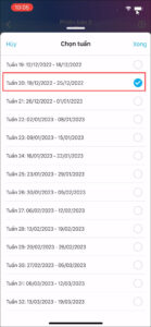 - Chọn tuần học cần tham khảo thông thiết bị.