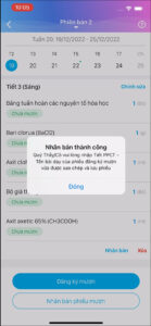 - Màn hình hiển thị thông báo nhân bản phiếu mượn tuần thành công.