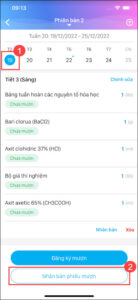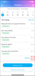 - Chọn tuần cần nhân bản phiếu mượn thiết bị, chọn Nhân bản phiếu mượn.