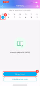 - Chọn ngày cần lập kế hoạch mượn thiết bị. Nhấn Đăng ký mượn.
