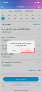 - Trường hợp sao chép sang tuần có phiếu chưa ghi mượn: Ứng dụng hiển thị tuần đã phiếu phát sinh phiếu đăng ký mượn, bạn có muốn dữ liệu sao chép thay thế các phiếu đăng ký mượn này không?