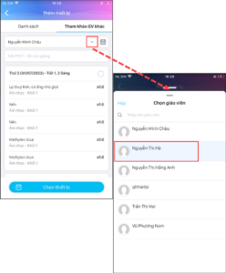 - Chọn tên giáo viên mình muốn tham khảo phiếu mượn thiết bị trong danh sách.