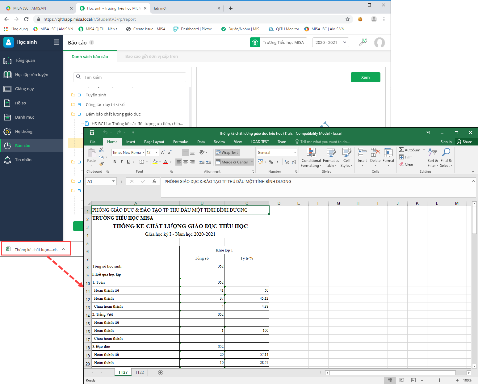 Xem hướng dẫn các bước lập báo cáo Thống kê chất lượng giáo dục tiểu học tại đây.