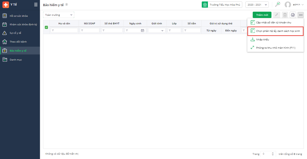 2. Thêm danh sách học sinh tham gia bảo hiểm y tế