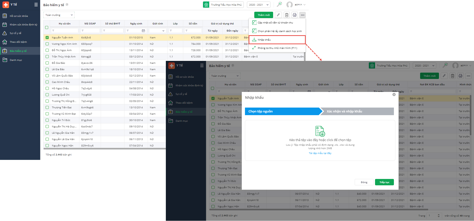 II. Thêm danh sách học sinh tham gia bảo hiểm y tế từ phân hệ khác