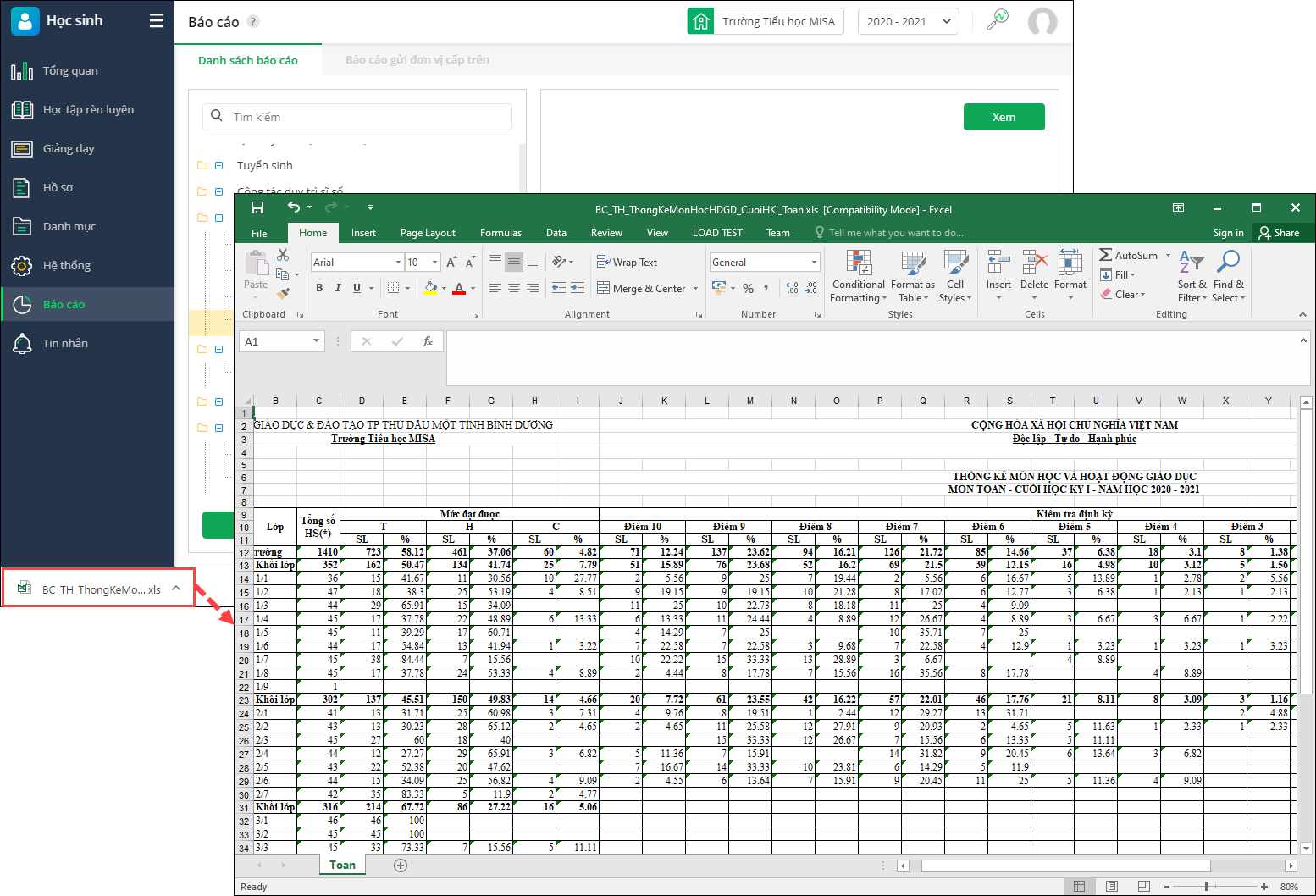 Giúp giáo viên Tiểu học muốn thống kê chất lượng từng môn vào cuối các kỳ đánh giá.
