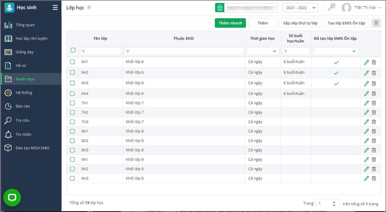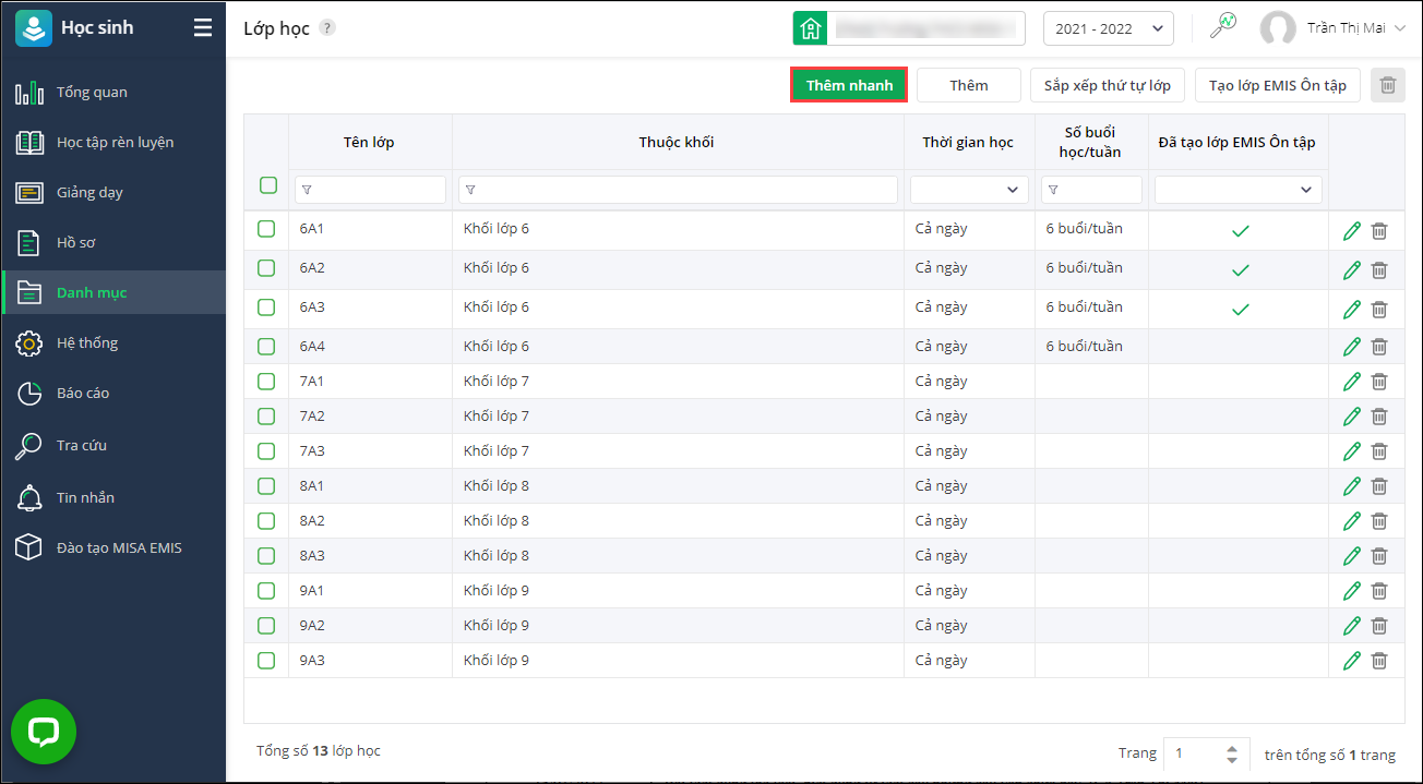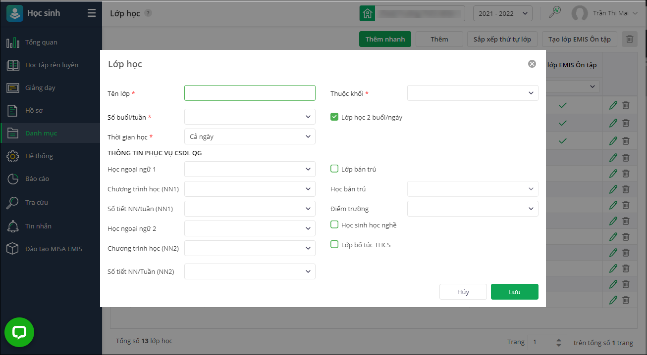 Mục đích: Hỗ trợ thêm nhanh hoặc thêm từng lớp học đang có tại trường để có thể phân công giảng dạy, xếp lớp cho học sinh… và in được báo cáo về giáo dục theo từng lớp học.
