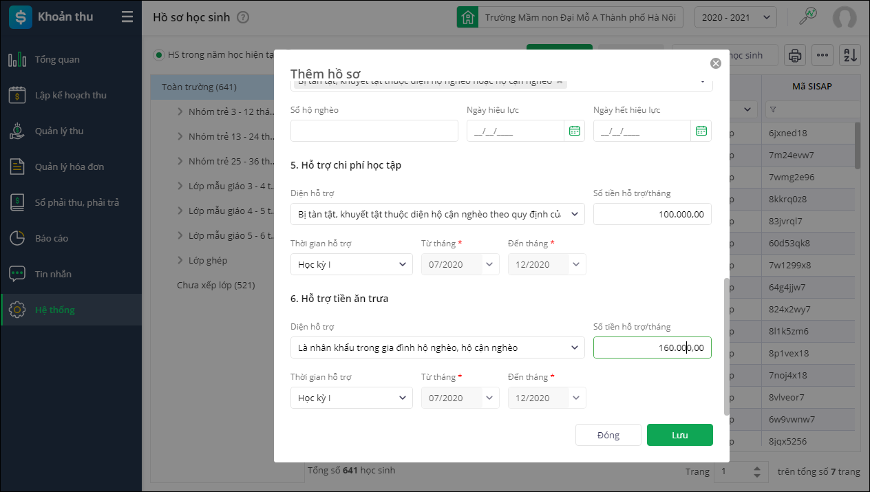 5. Kế toán mong muốn theo dõi được các học sinh mầm non được hỗ trợ tiền ăn trưa theo Nghị định 105/2020/NĐ-CP để gửi đơn vị chủ quản phê duyệt
