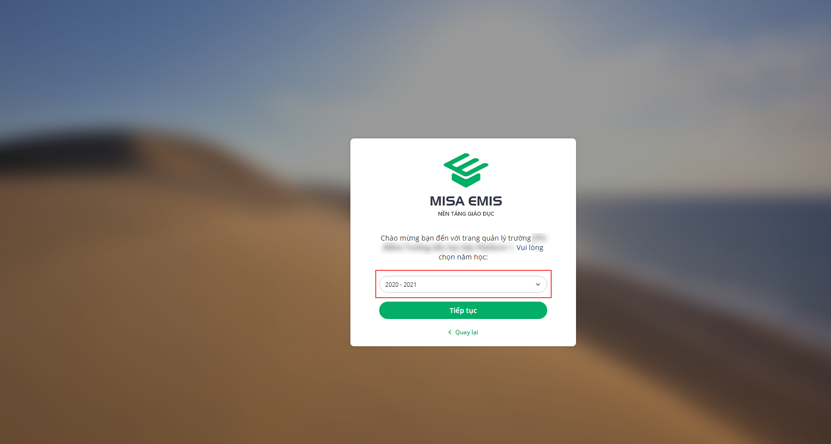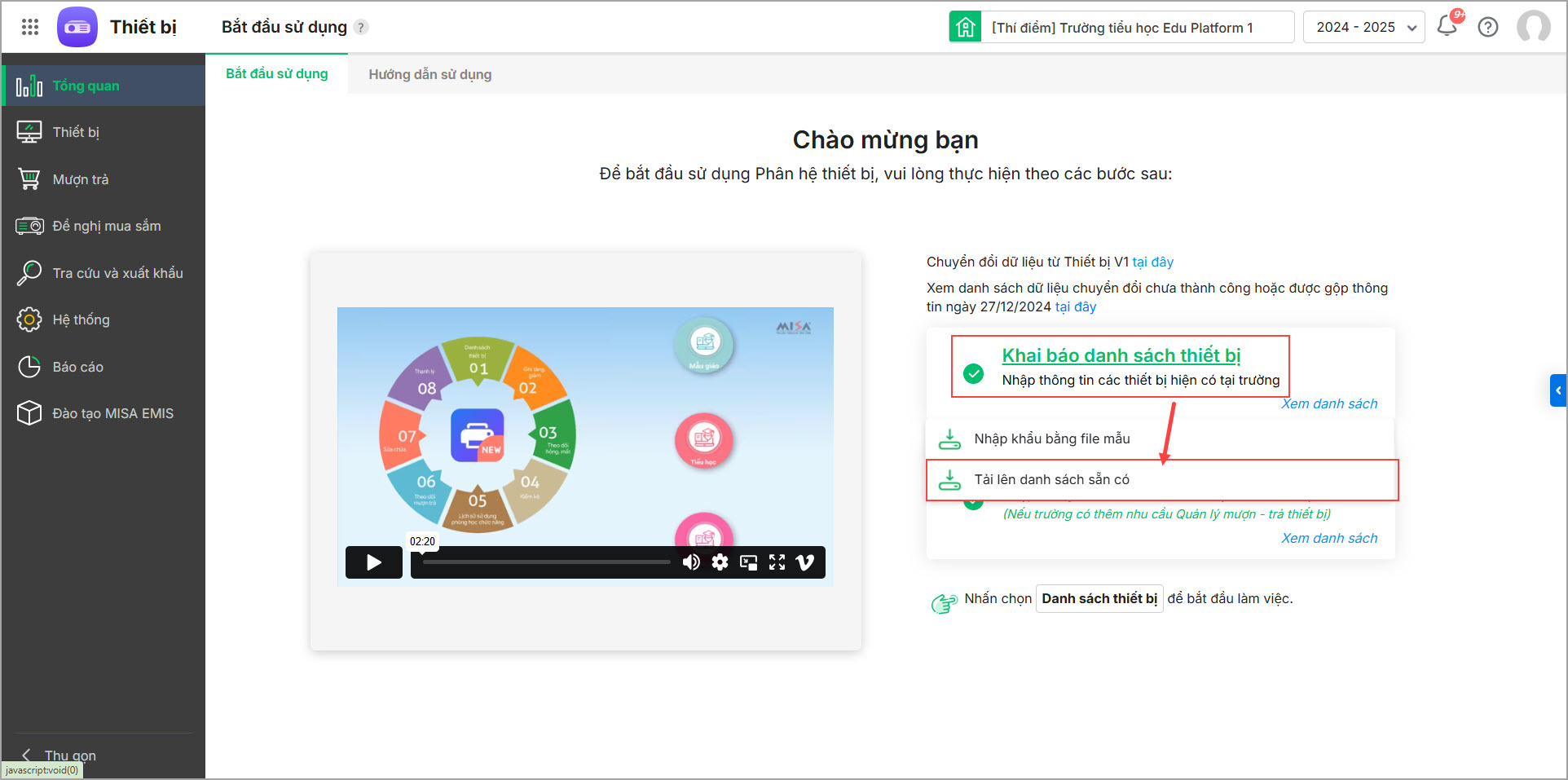- Đối với đơn vị lần đầu sử dụng phân hệ thiết bị cần khai báo thông tin năm học: