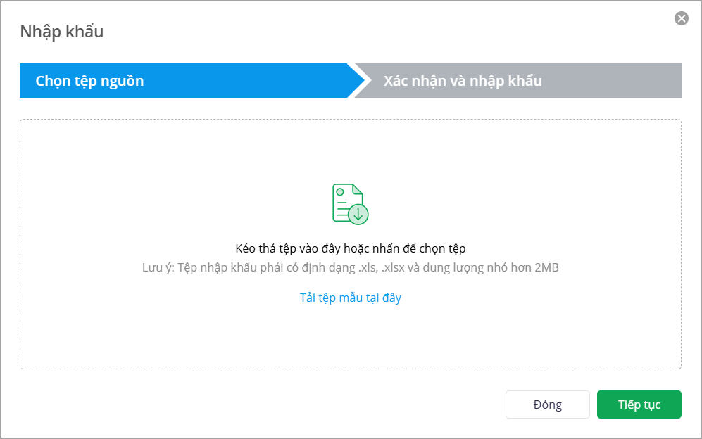 - Nhấn Tiếp tục để chuyển sang bước Xác nhận và nhập khẩu.