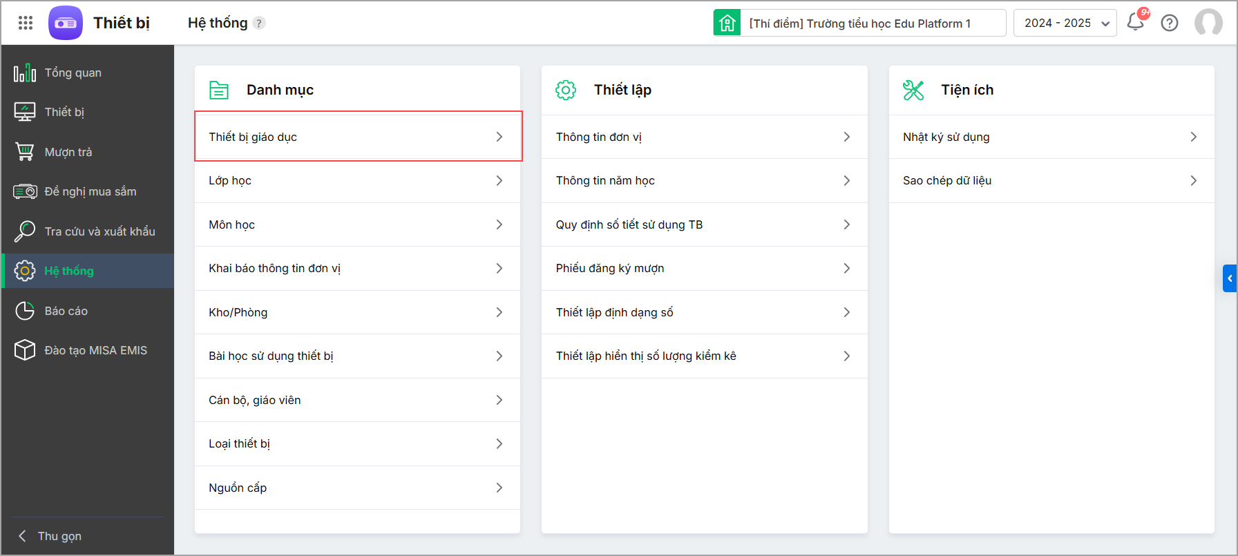 1. Vào Hệ thống\Thiết bị giáo dục.