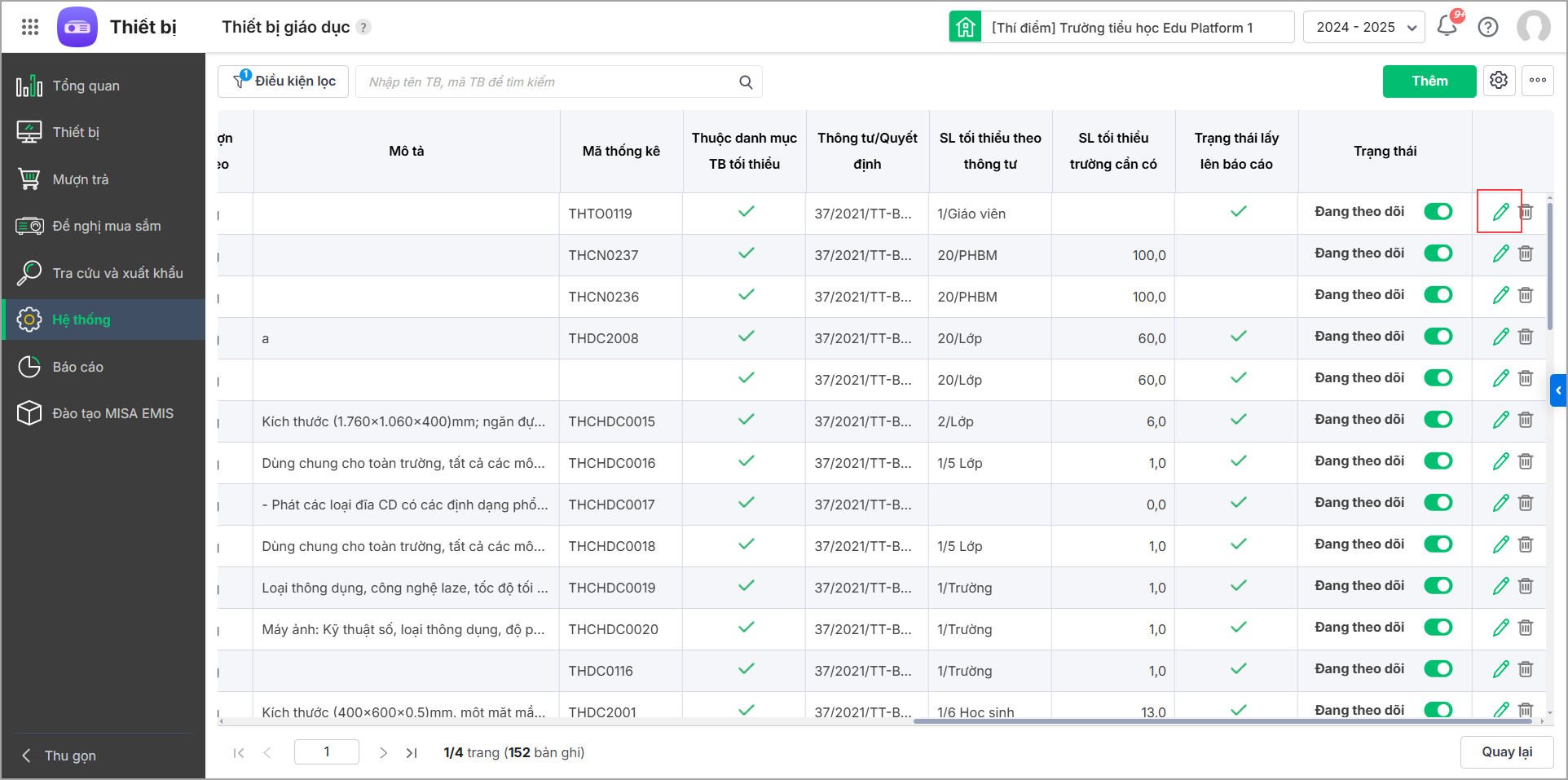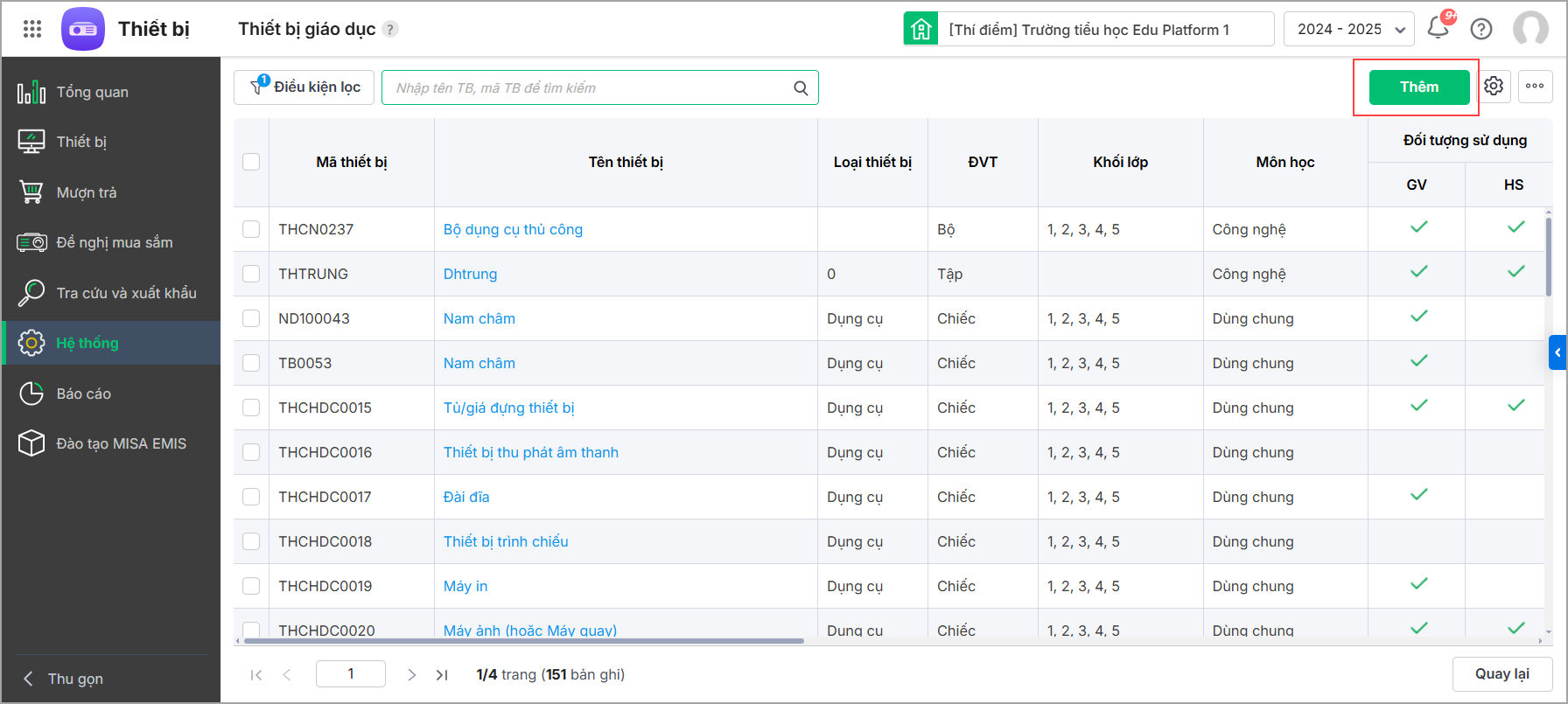 3. Nhấn Thêm để thêm mới thiết bị giáo dục.