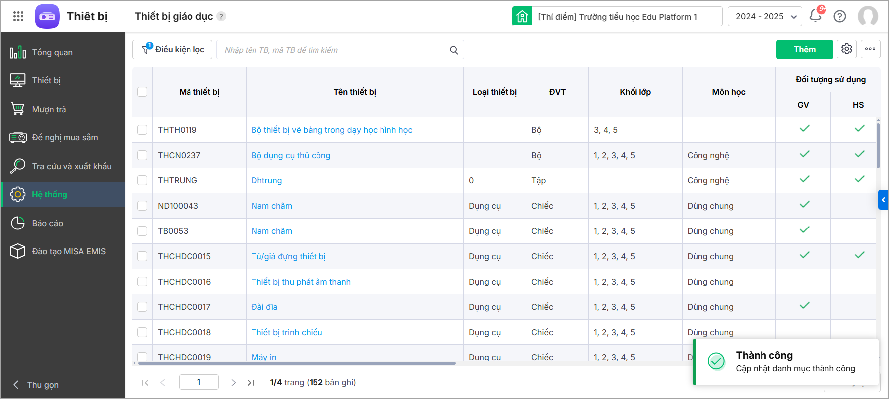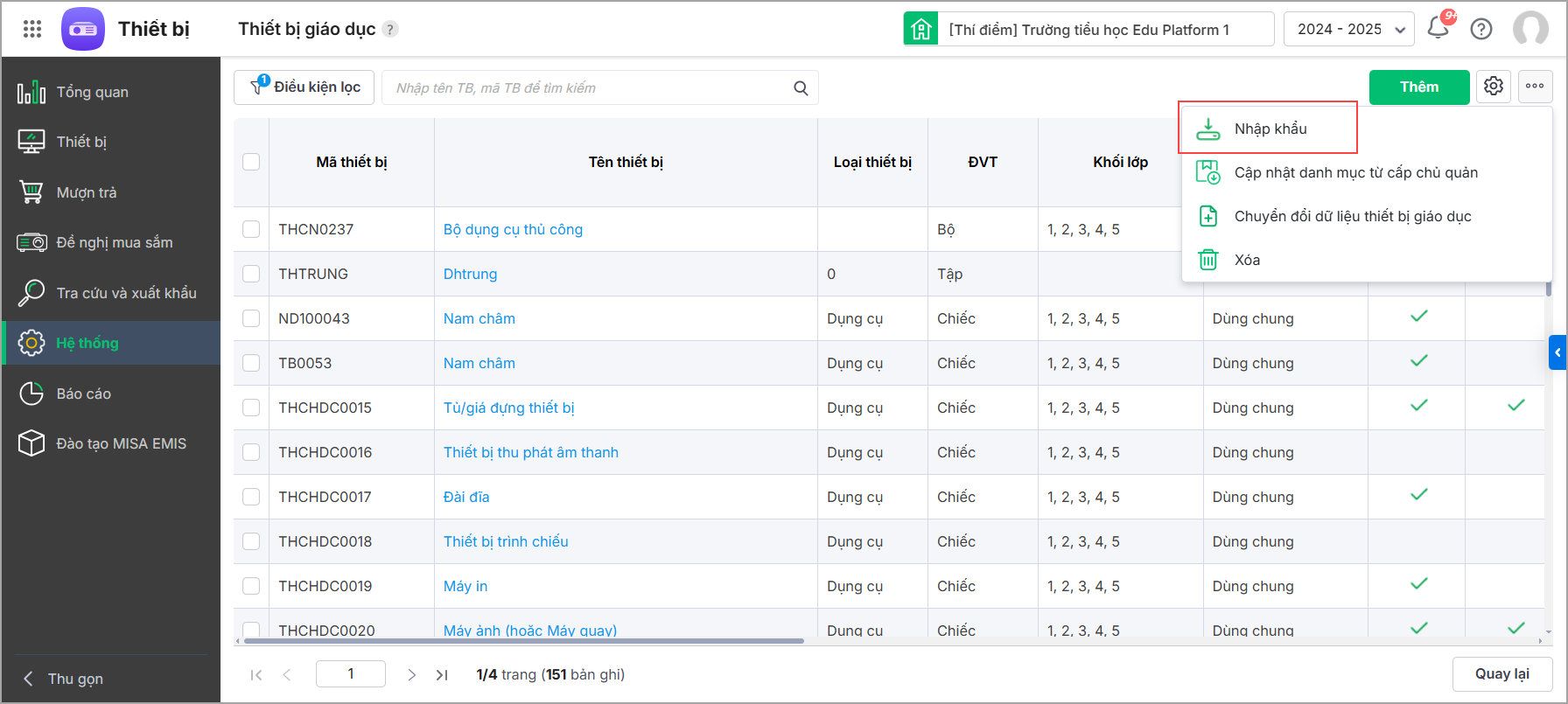1. Vào Hệ thống\Danh mục\Thiết bị giáo dục.
