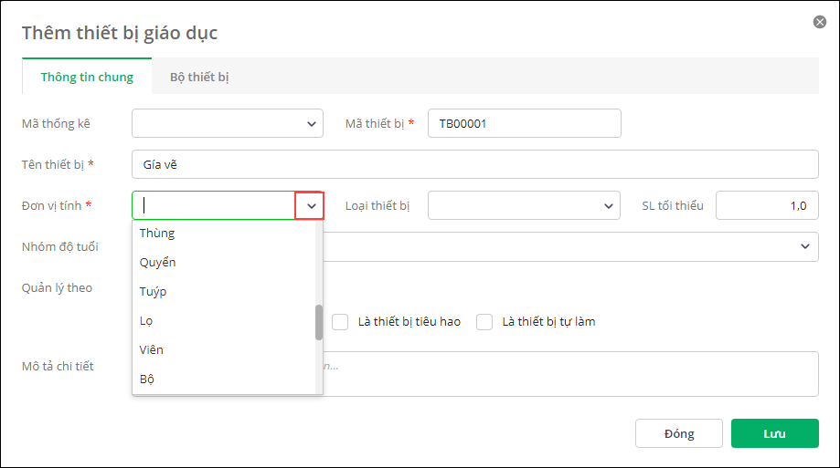 I. Thêm mới thiết bị giáo dục vào danh mục