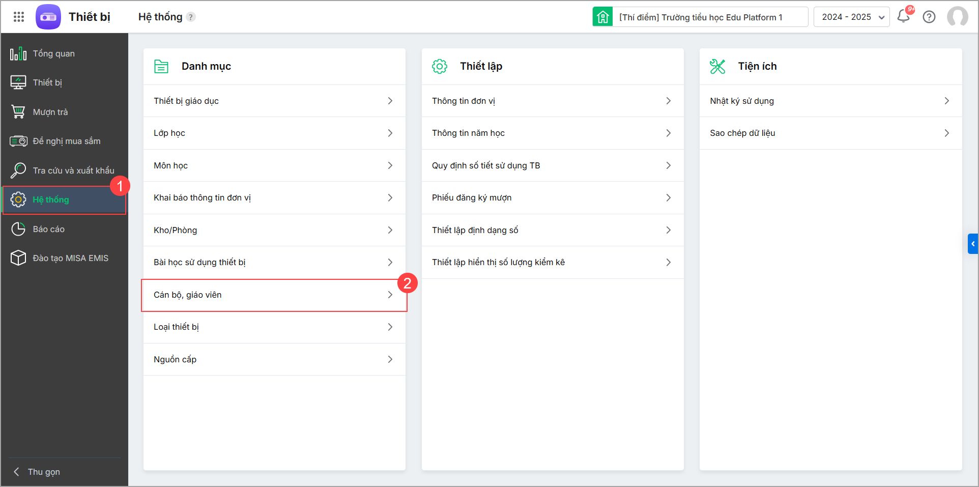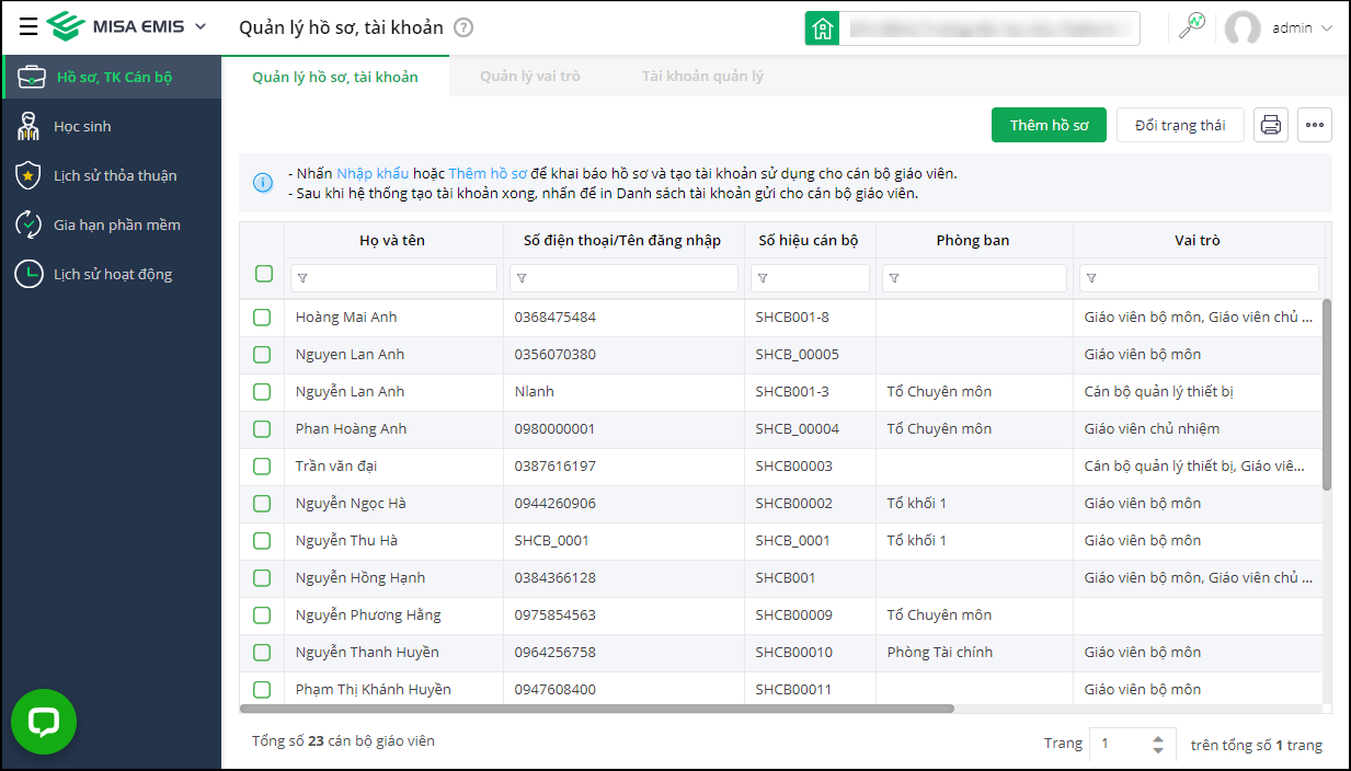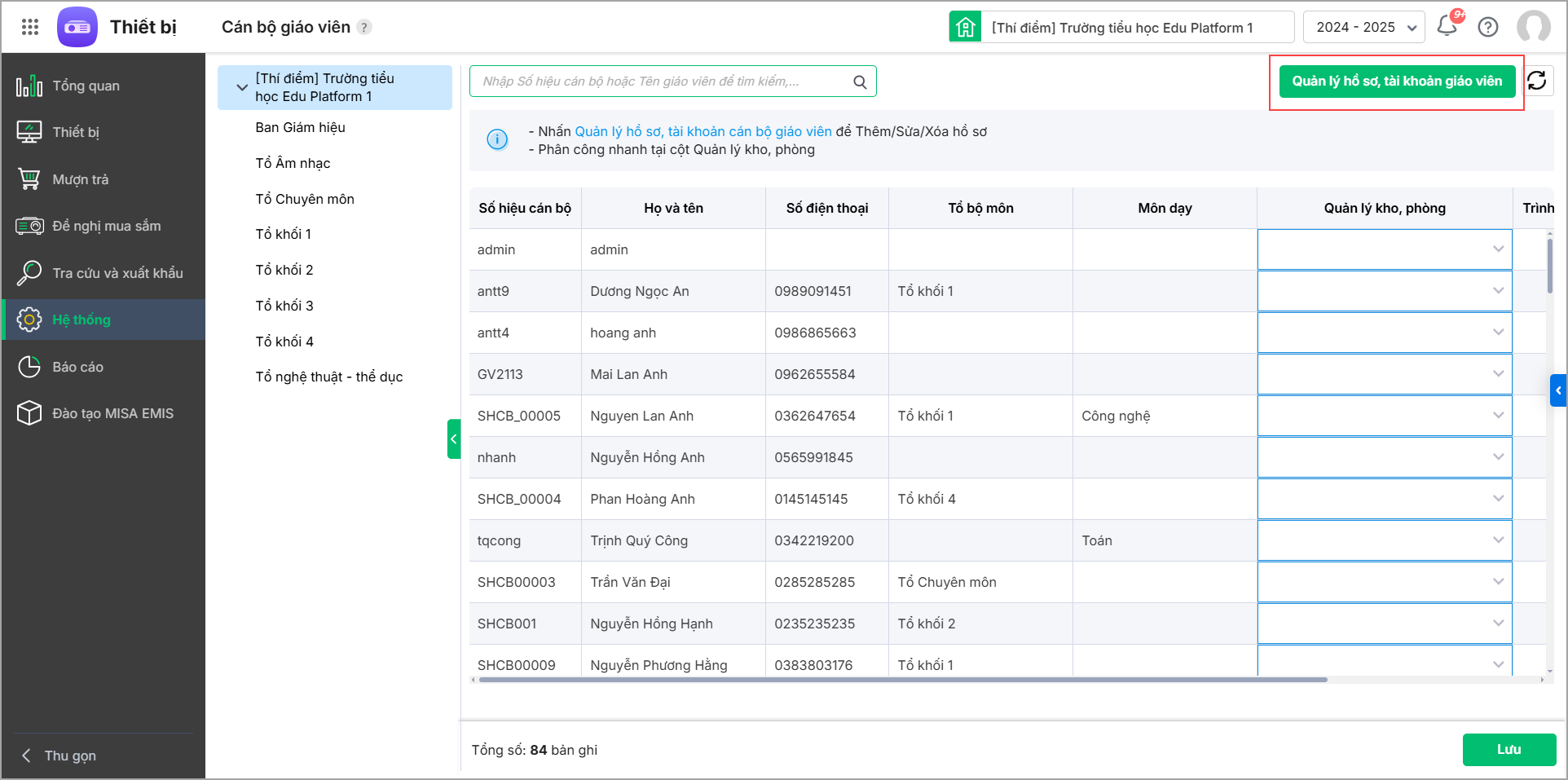 1. Tạo và quản lý tài khoản cán bộ giáo viên