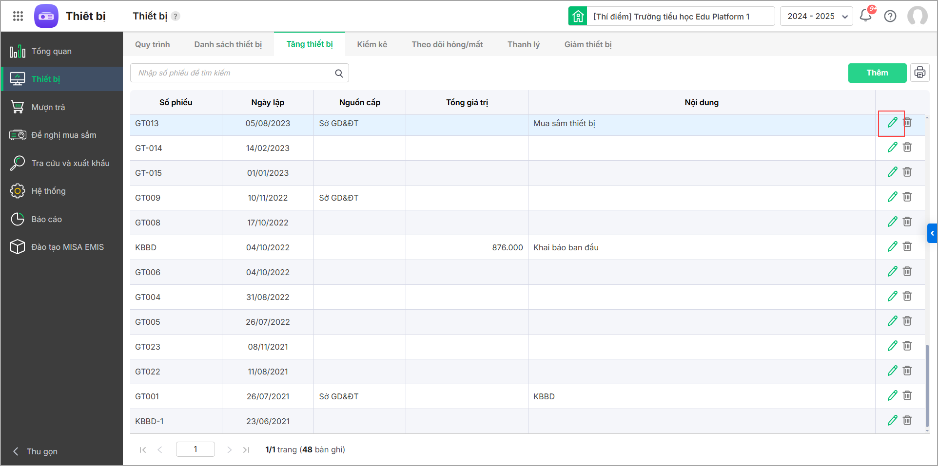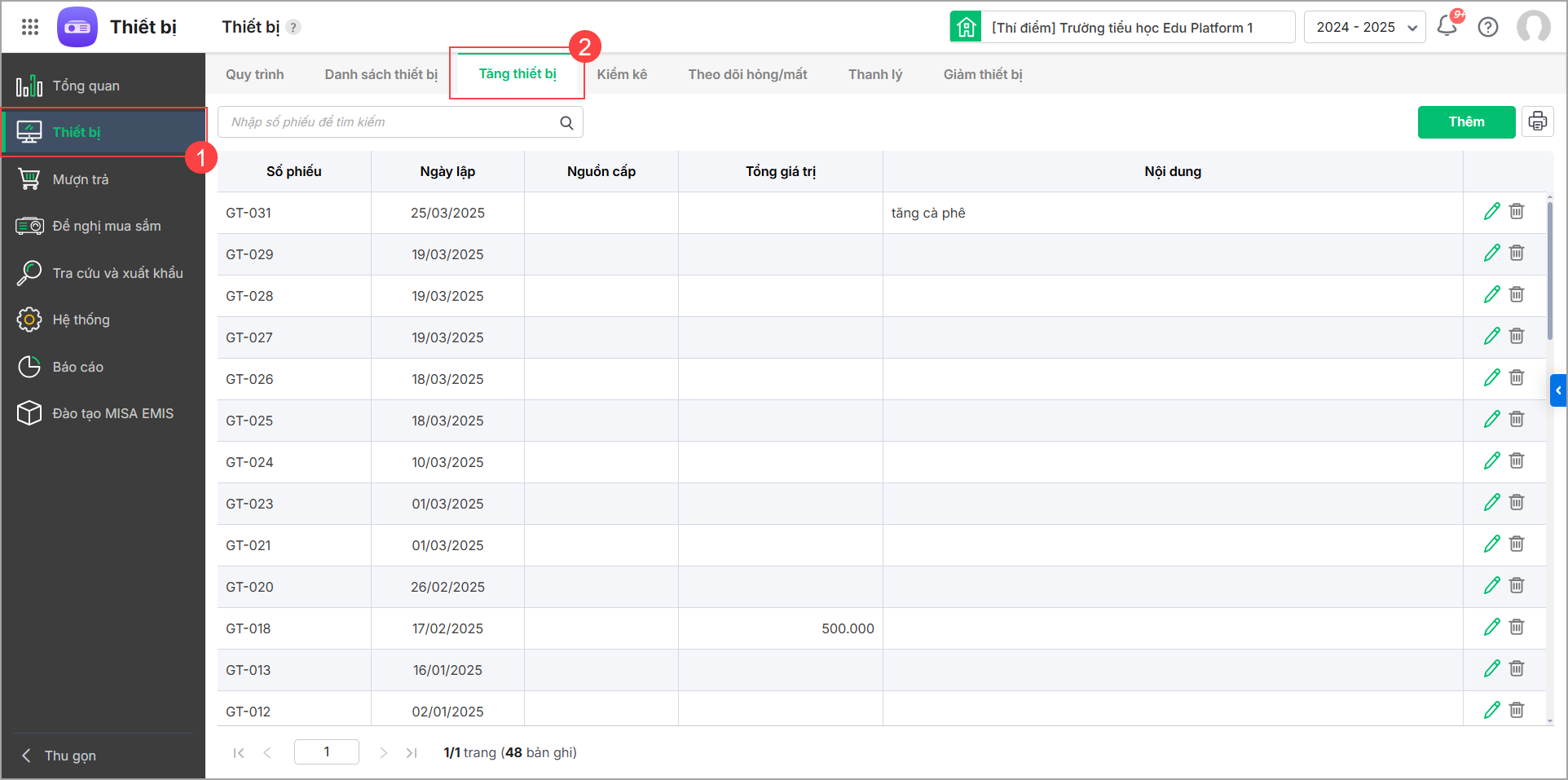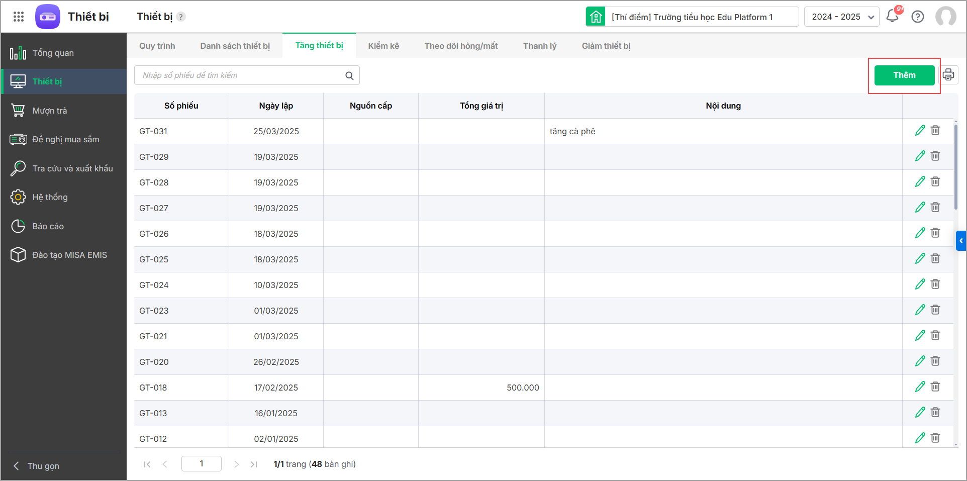 - Nhấn Thêm để thêm phiếu ghi tăng thiết bị.