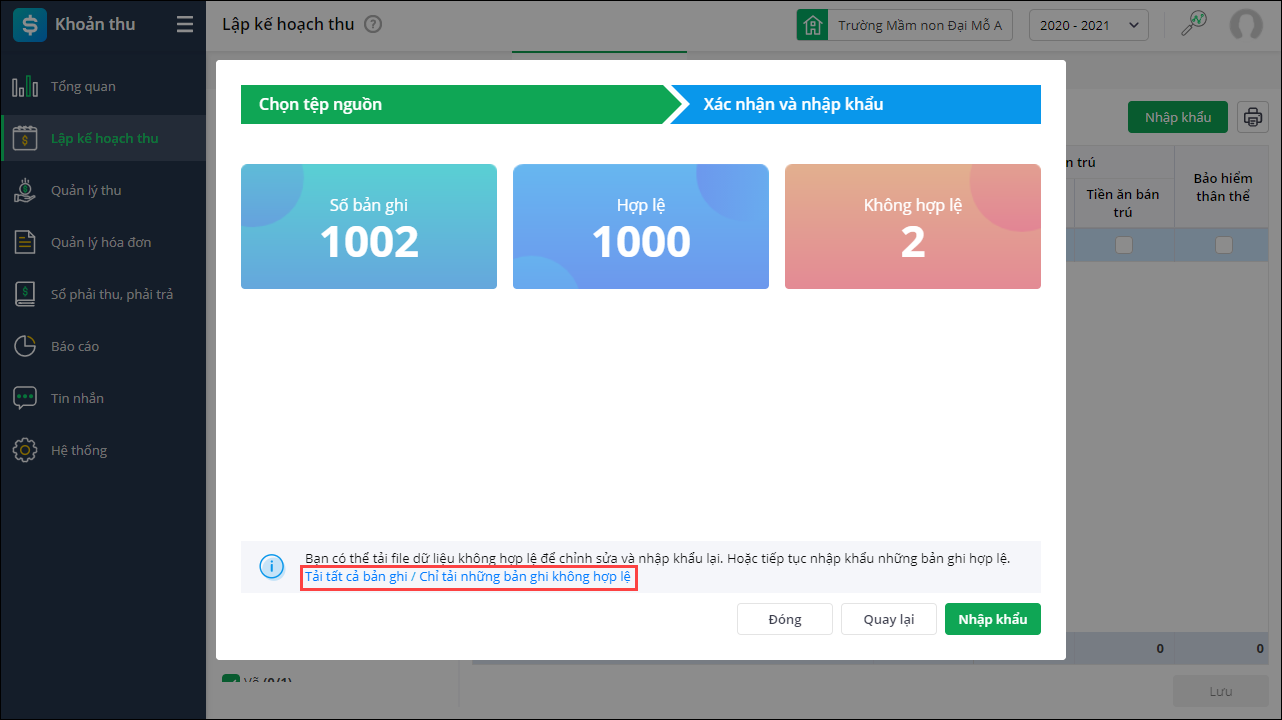 - Nhấn Nhập khẩu để nhập khẩu bản ghi thông tin hợp lệ vào phần mềm.