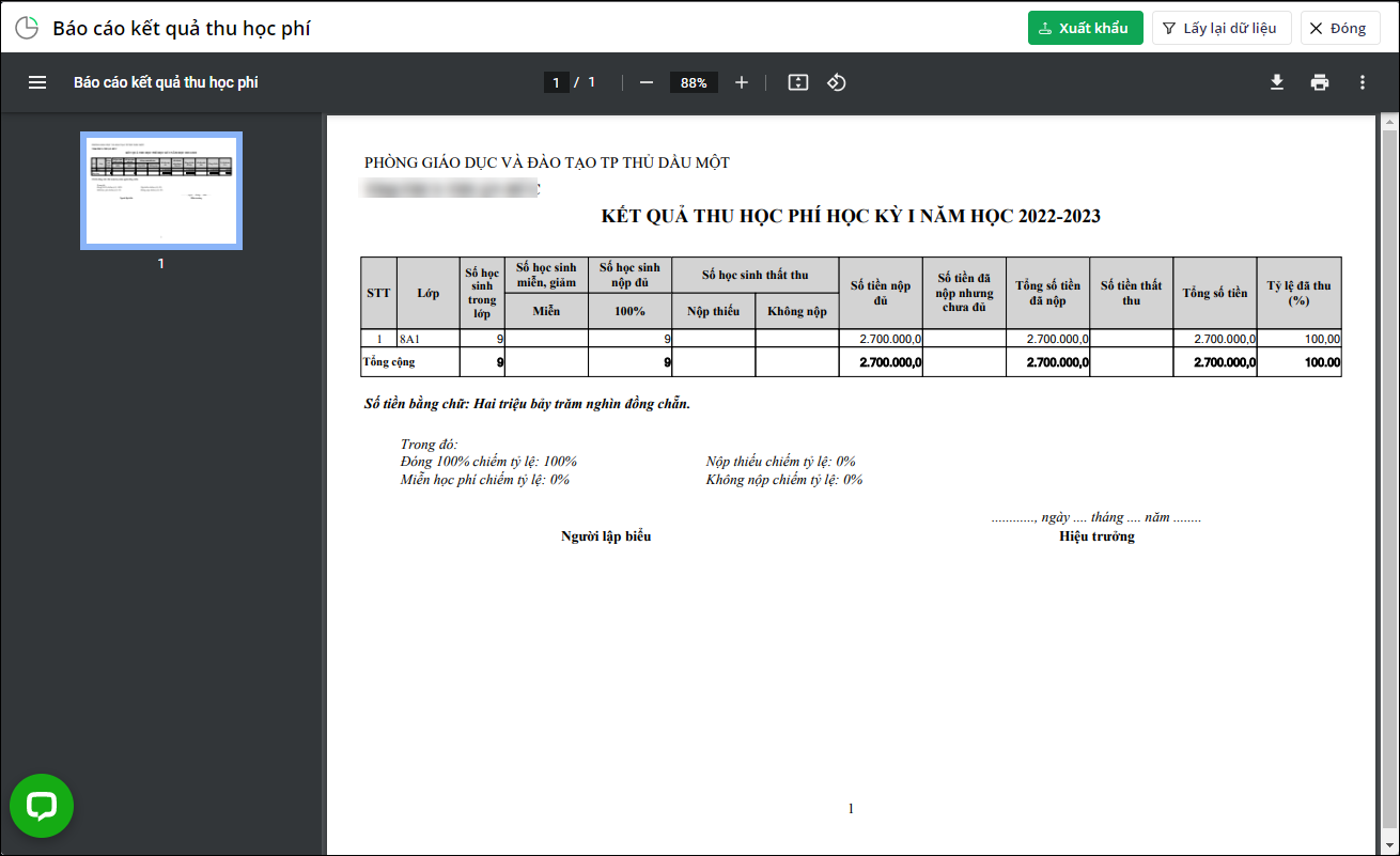 Giúp kế toán thống kê kết quả thu học phí của toàn trường để báo cáo tính hình với PGD, SGD.