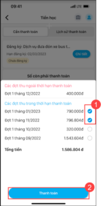 - Tích chọn những đợt thu muốn thanh toán trước, nhấn Thanh toán.