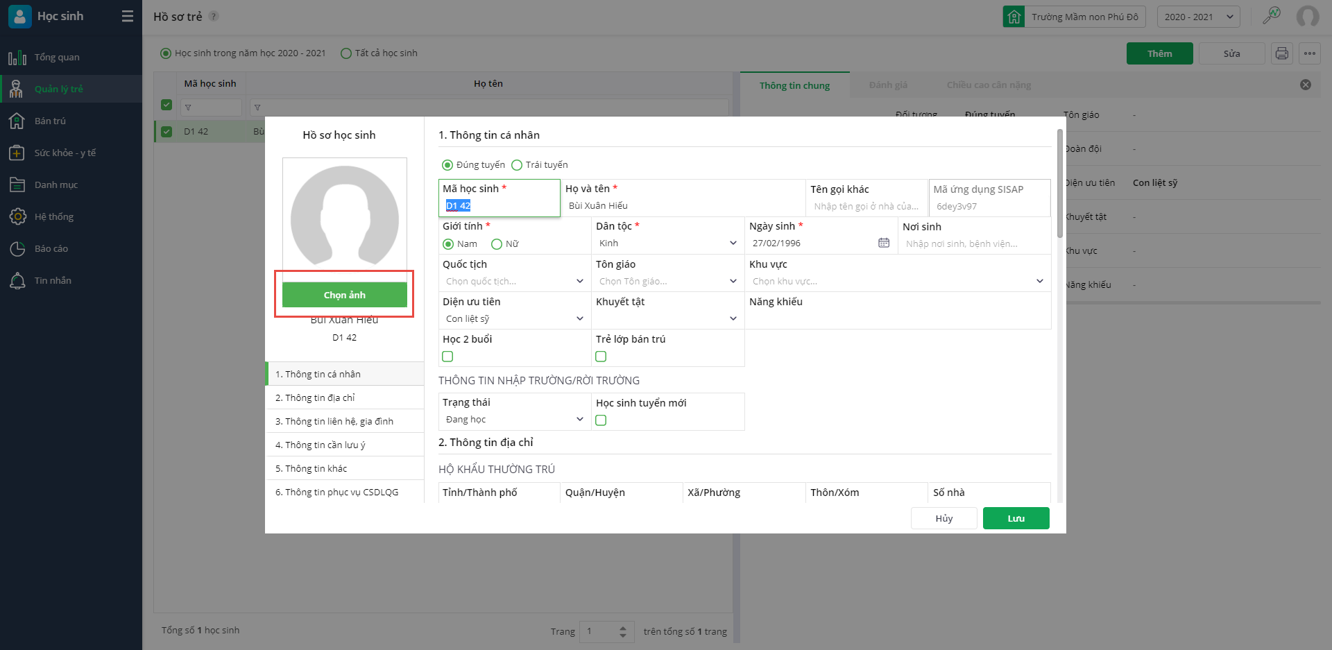 Cách 1: Thêm ảnh vào hồ sơ của từng trẻ (phù hợp với trường hợp chỉ cần thêm ảnh cho 1 trẻ)