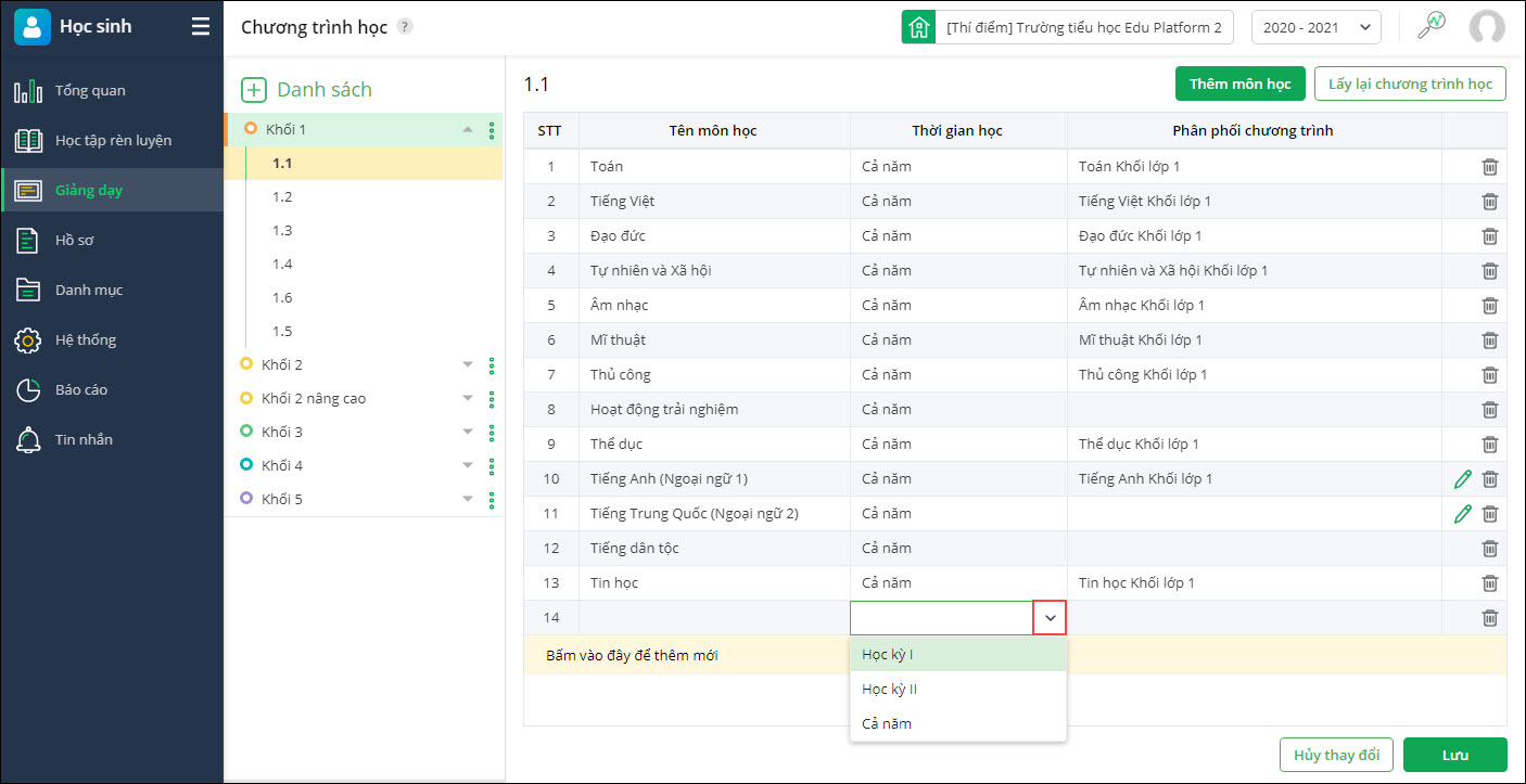 Xem hướng dẫn thiết lập Chương trình học tại đây
