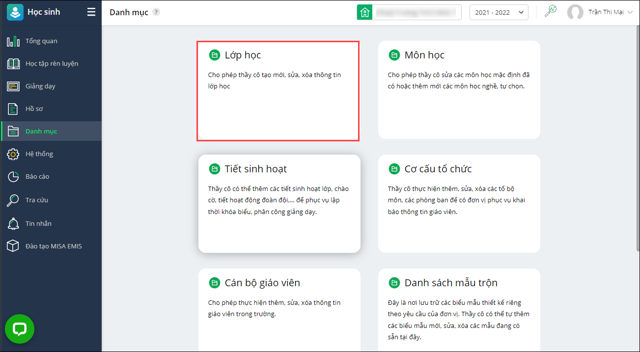 - Danh sách lớp trên báo cáo xuất ra từ phần mềm sẽ hiển thị theo thứ tự sắp xếp tại danh mục Lớp học.