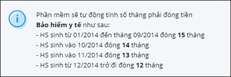 - Phần mềm tự động tính số tháng phải đóng tiền Bảo hiểm y tế dựa theo thông tin ngày sinh của học sinh như sau: