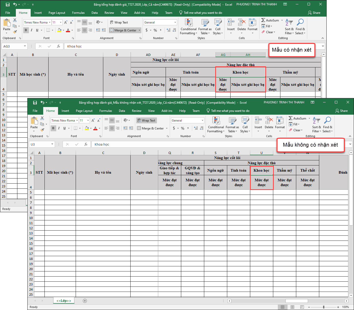 - Mẫu nhập khẩu kết quả đánh giá định kỳ giữa kỳ I, giữa kỳ II, học kỳ I