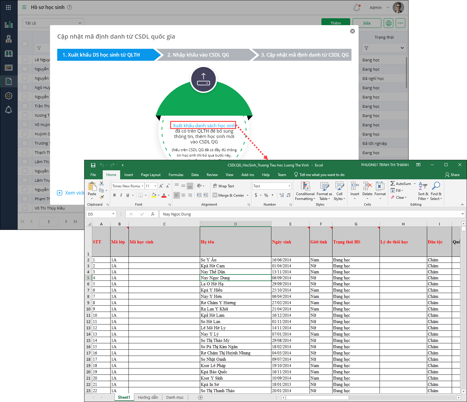 Bước 2: Nhập khẩu danh sách học sinh vào CSDLQG