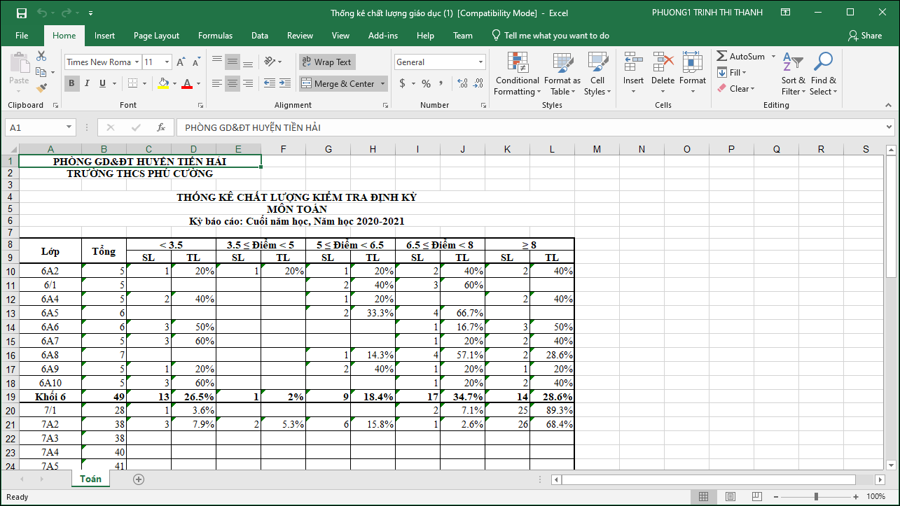 • Tích chọn So sánh với số liệu năm học trước (nếu cần)