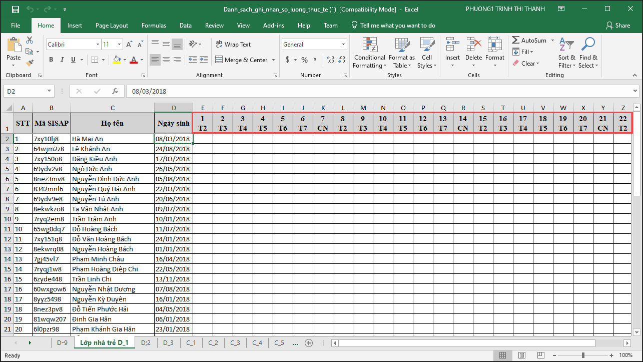 Nhập khẩu bảng theo dõi số buổi sử dụng