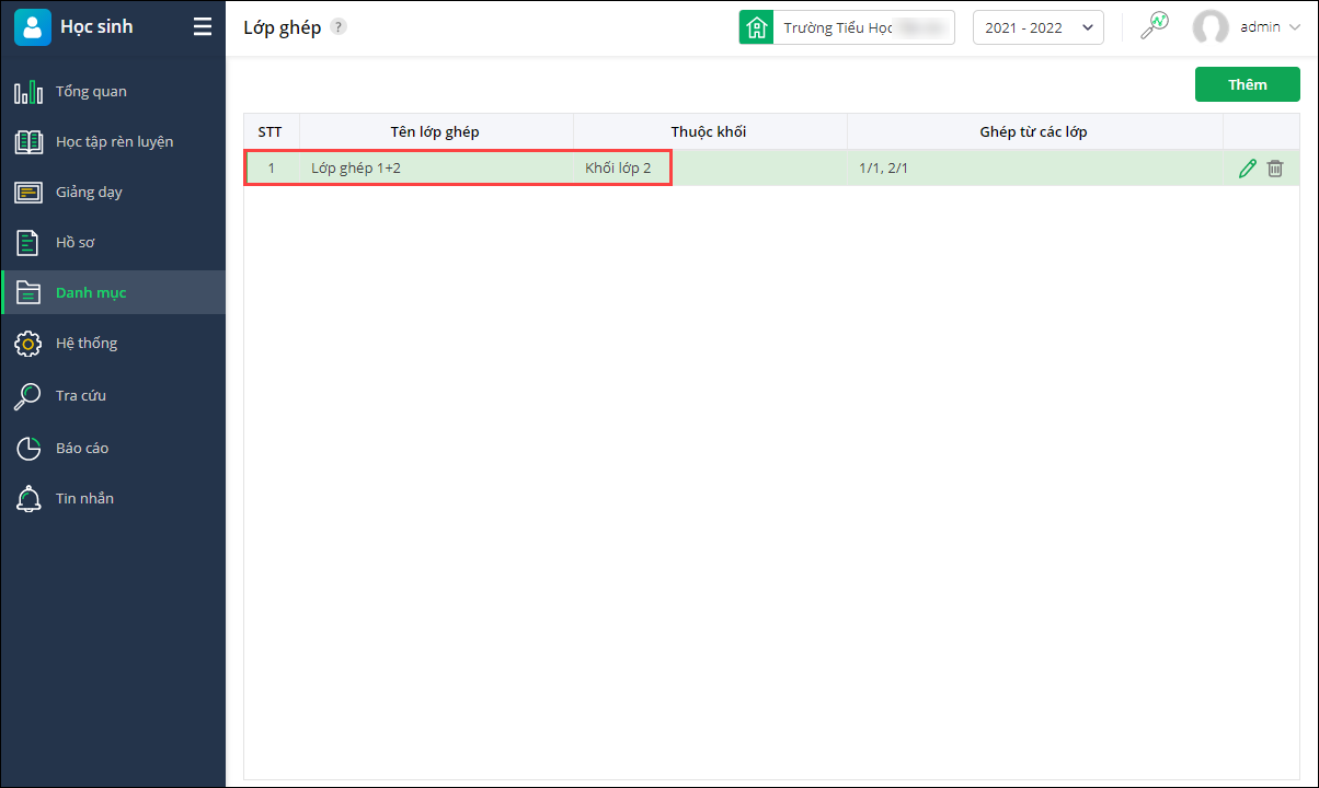- Vào Danh mục\Lớp ghép, nhấn Thêm để thêm lớp ghép